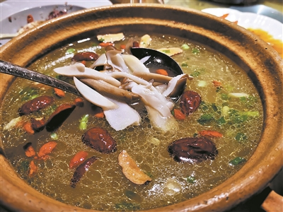 没有吃过野生菌,就等于没到过云南,这句话一点也不夸张。无论是去泸沽湖自然景点,还是到和顺古镇等历史景区,野生菌都是值得品尝的美食。一锅多宝野菌汤汇聚了多种当地野生菌,搭配优质土鸡,加入红枣、枸杞一起熬制,那鲜甜的味道,不输海鲜大餐。