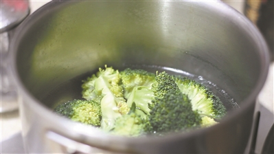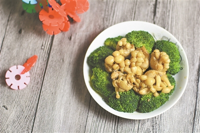 | 3.处理菜花 绿菜花切成小朵,过一遍开水后,捞出控水待用; |