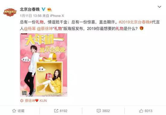 截至2月6日23:00,2019北京台春晚在线视频播放量、热度均为同时段卫视春晚第一。