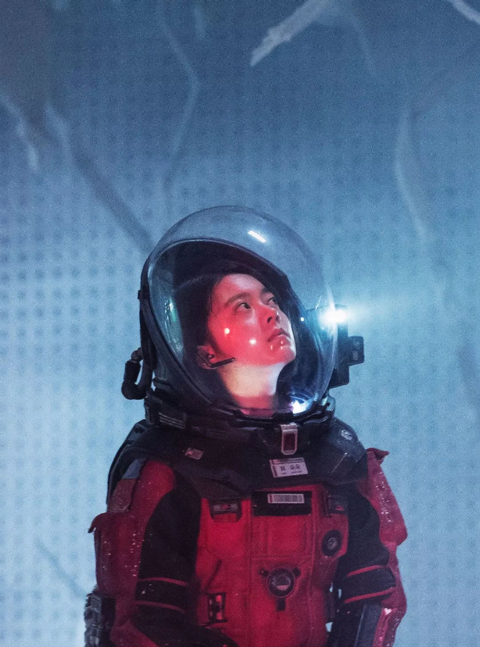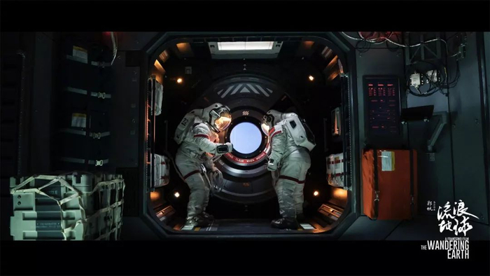 单从视觉效果和未来世界的世界观设定来看,本片算是比较“硬”了。片中苏联机械工业式的审美处处可见,地下城、运载车、空间站的内部镜头大部分都是实拍,主创团队从无到有建造出了很多甚至连刘慈欣自己都不确定该是什么样子的硬件设施。机动性绝佳的运载车、防护力量强大的外骨骼装甲,基本上反映了未来实用主义科技的发展轨道。很多细节如末日来临前北京、上海等城市地标建筑被毁的场景,地下城中的春节、学校、各种方言、交通规则等等,很好地做到了科幻电影的本土化。