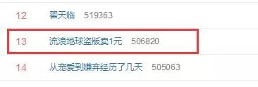 但今天一觉醒来,《流浪地球》又上热搜了,只是这次上榜的却是“流浪地球盗版卖1元”: