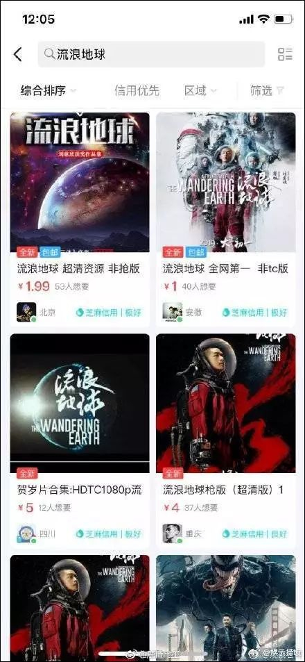 《流浪地球》遭遇盗版,卖家声称高清完整版,二手平台售价仅1元