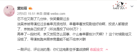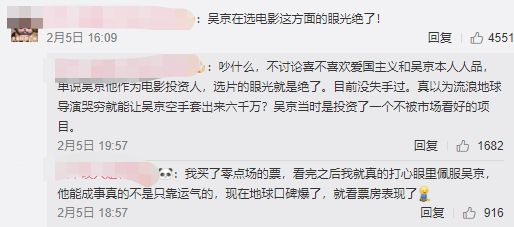 这件事在网上引起网友的热议。大家调侃《流浪地球》“空手套战狼”;而吴京被“坑”成锦鲤,也有笑称他是投资界的奇才。