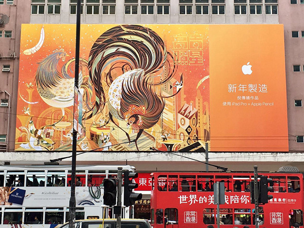 说到底,最了解中国人过年心态的始终还是中国人。或许是因为洋相出得太多,越来越多的品牌开始选择华人设计师操刀春节主题的设计。苹果已于数年和香港插画家倪传婧合作春节贺图,传统生肖图腾惟妙惟肖的刻画、大胆的细节装饰、现代的配色和插画所蕴含的深厚寓意,组成了最适合春节吉祥气氛的巨幅广告。
