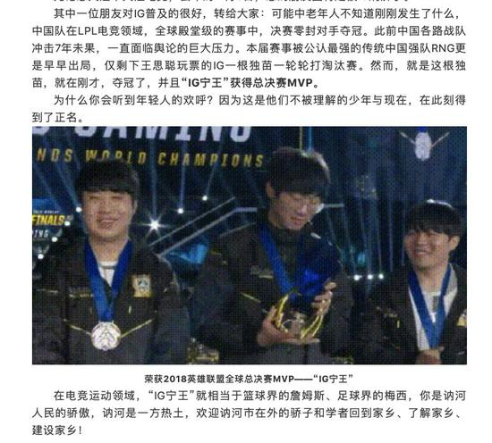 “IG宁王”真名叫高振宁,不过,在讷河市共青团的官方微信中,对高振宁的称呼一直是“IG宁王”,官微还转发了一段普及文字: