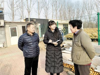 武邑县圈头乡纪委书记李晓艳(中)到该乡小王村村民家中走访。通讯员 史文环摄