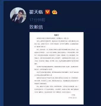 随后,翟天临在微博上发布道歉信表示:申请退出北大博士后科研工作,向学校、老师、社会公众郑重道歉。