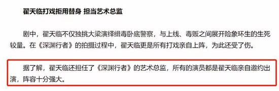 在另一份宣传稿件中,翟天临还担任该剧的艺术总监,所有演员都是其亲自邀约。