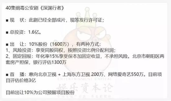 娱乐资本论还报道称,目前《深渊行者》的宣发费用是1600万元,而通常电视剧发行与投资的比例为1:1,“太不正常”,且“目前《深渊行者》正在进行宣发阶段的最后一轮融资,意向投资人明确表示‘不敢碰’”。