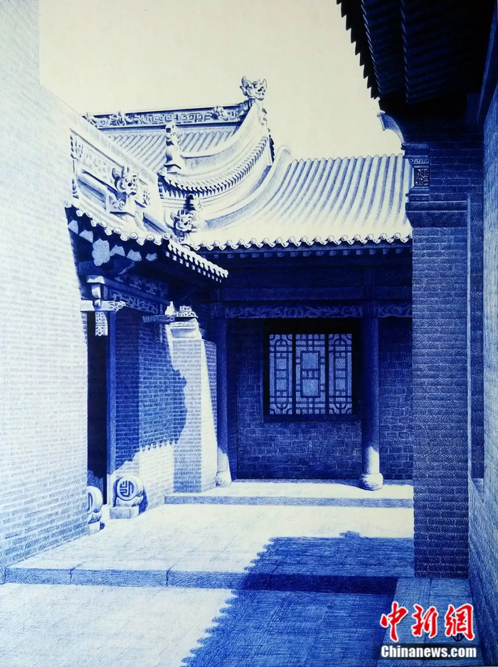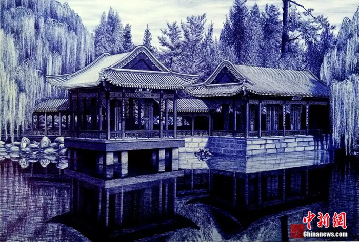 作圆珠笔画需要沉得住气,每一笔画都不可逆,长时间进行细致的工作,对手、眼以及身体压力极大,除了专业的技艺,更需要超人的耐心。