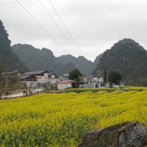 田阳县城往南60公里,地表从河谷抬高到大石山区,汽车循着蜿蜒的山路踏入巴某村。这是另一番天地,寒来暑往,低纬度高海拔的巴某村始终维持着18°的年平均气温。这个时节,恰好大片的油菜花盛开在桃李林间,刚过去的春节里,超过2万外地游客来到巴某,一睹世外桃源的芳容。