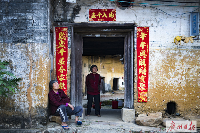 刚过完春节,岗埔围垄屋内不少大门上都张贴着红艳艳的春联。