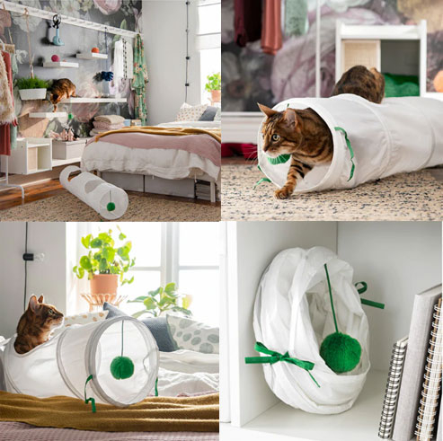 宠物也有新奇独特的玩具,游乐隧道可以让宠物猫做隐藏和狩猎游戏,隧道中的小球可以激发猫的好奇心和本能,游戏结束后,也可以将隧道折平,节省空间。