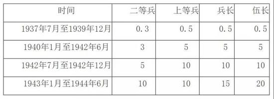 侵华日军士兵的月薪(日元)