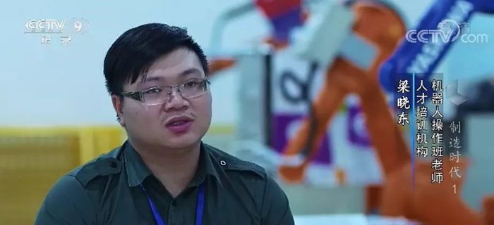 梁晓东是智通人才培训机构的机器人操作班老师。这两年,仿佛在一夜之间,机器人培训班成为各种技能培训机构最热门的专业。在他的班上,有不少曾在工厂打工的人,杨喜是其中一个,他7个月前还是一家工厂的生产主管,随着自动化生产线的投入使用,他被迫放弃了原来的岗位,他跟很多不希望被自动化生产线淘汰的人一样,正不分昼夜,马不停蹄地跟随梁晓东学习机器人操作,期待学成后重新上岗。