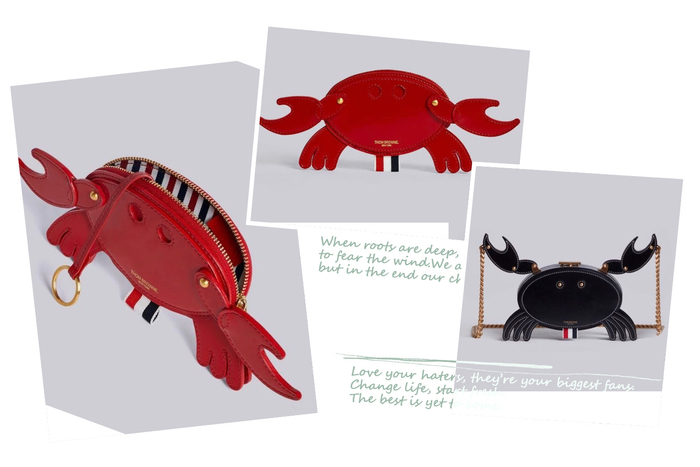 螃蟹包是Thom Browne比较著名的款式,极具品牌辨识度,这款包造型别致,蟹爪灵活可动,很适合追求潮流的个性女孩,背出街撞包几率低。整个包采用小牛皮搭配黄铜五金配件,包内内置钥匙环,兼顾实用性。