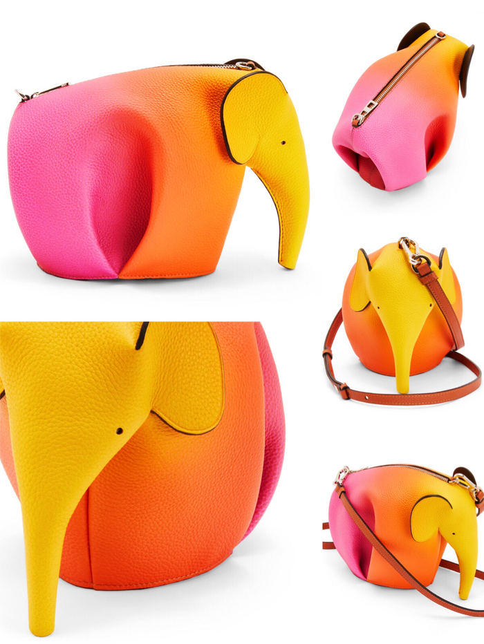 说到动物包,最为人熟知的就是LOEWE的小象包了,在明星街拍中出镜率极高。最近LOEWE小象包推出了新款配色,橘粉渐变的颜色非常适合春天。这款俏皮的迷你斜挎包选用经典小牛皮手工精制而成,长鼻子和穿孔眼睛等细节处也是处理得惟妙惟肖。