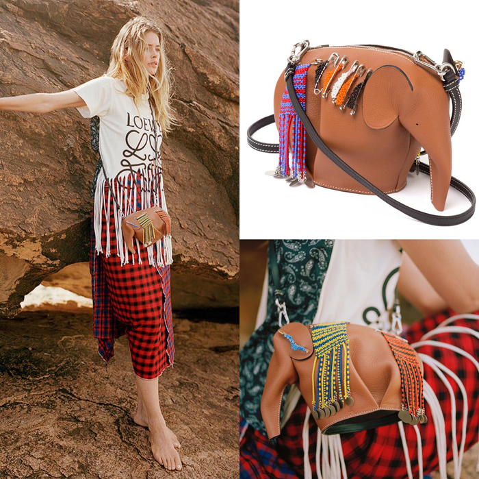 LOEWE还与KnotOnMyPlanet合作推出了限量款迷你小象手袋,所获利润全部捐赠给大象危机基金会,旨在遏止捕杀大象及象牙走私购买。