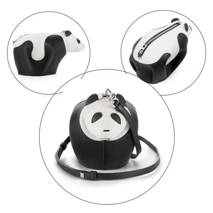 憨态可掬的小熊猫造型迷你手袋,一经推出就大受欢迎。小牛皮的质地,配上黑色漆边以及抛光的银色金属配件,做工极其精致。熊猫造型比较常见,但无论从精工还是用料角度来说,LOEWE都象征着高品质。