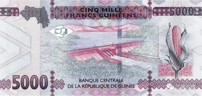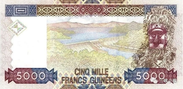 ▲几内亚5000几内亚法郎纸币上的地标,金康水电站。