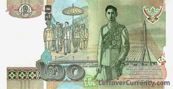 2003年3月,泰国新发行的20泰铢,背面图片是泰国拉玛八世国王阿南塔·玛希敦和拉马八桥,这座大桥作为中泰两国友谊的象征,被永久载入史册。
