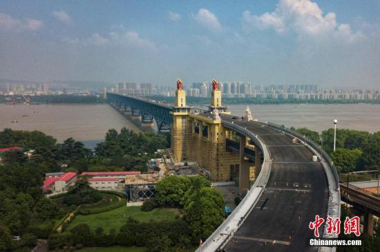 资料图:航拍封闭维修的南京长江大桥。 中新社记者 泱波 摄