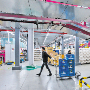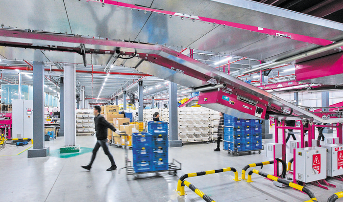 全自动化的设备从仓库的入口排到出口,像一座粉红色的巨大迷宫,各种货物快速又准确地经过不同的自动化机器分别进行集货、打包、分拨,这是唯品会西部总部基地8号仓库展现给市民代表的壮观景象。“真是开了眼界,终于知道电商企业是怎么完成巨量的订单了!”市民代表们一边参观一边感叹,“全是自动化的设备,还有机器人在各个货架间穿梭,很震撼,看得我们眼花缭乱。”