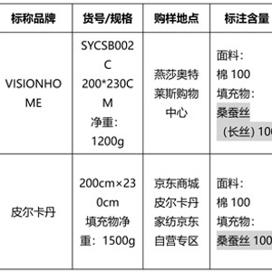 原标题:北京消协:皮尔卡丹、宝缦等品牌蚕丝被、羽绒被不合格