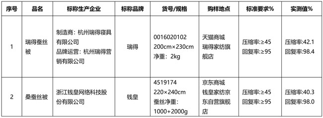 标称商标为“瑞得”、“钱皇”的2种样品的压缩回弹性低于标准规定。