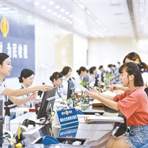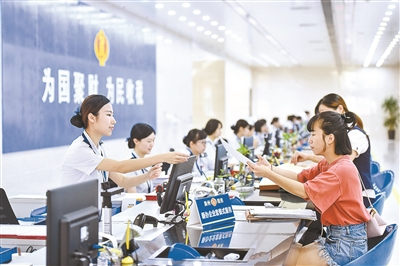 “起征点上调”减税红利惠及数亿人群,图为一办税服务厅工作人员正在为纳税人办理业务 供图/新华社