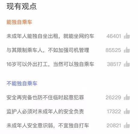 原标题:未成年人能否独自坐网约车?30多万人投票,网友吵翻了