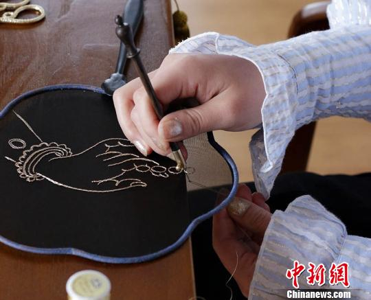 刘瑶正在刺绣。 高展 摄