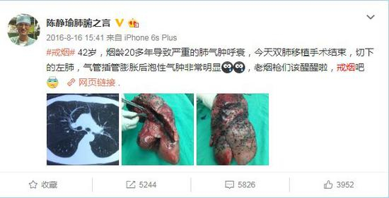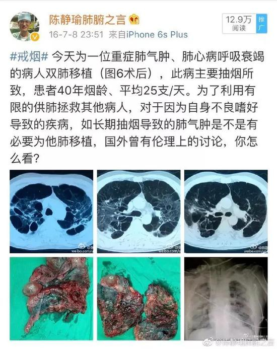 作为肺移植专家,陈静瑜这几年一直在呼吁控烟,也提出国外有过这样的伦理讨论:如果因为长期抽烟导致的肺部疾病是不是有必要进行肺移植?
