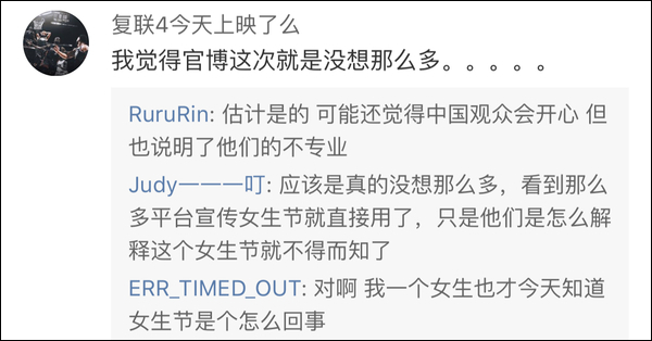 还有人认为用“女生”这个词来代替“妇女”,是在故意污名化“妇女”,怒批漫威中国方的宣发手段不走心,有侮辱中国女性的嫌疑。