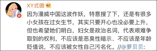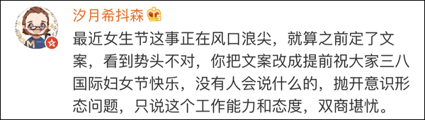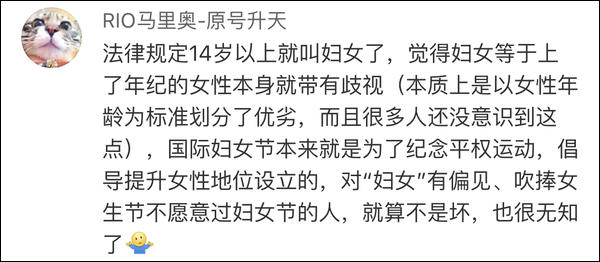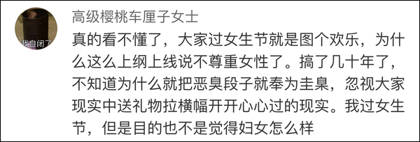 “大家过女生节不就是图个开心么,这怎么跟尊重女性扯上关系了?”