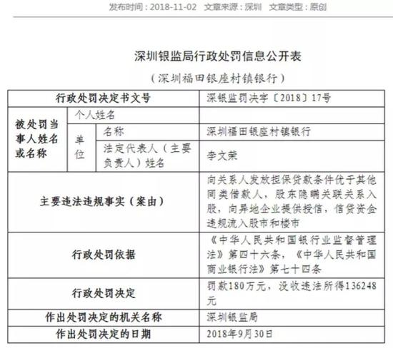 此前,深圳福田银座村镇银行,也因信贷资金违规流入股市被罚。