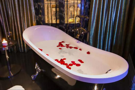 再往浴缸里撒上些许玫瑰花瓣,
