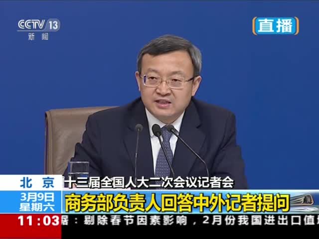 十三届全国人大二次会议新闻中心3月9日(星期六)10时30分在梅地亚中心新闻发布厅举行记者会,邀请商务部部长钟山、副部长兼国际贸易谈判副代表王受文、副部长钱克明就“促进形成强大国内市场 推动全方位对外开放”相关问题回答中外记者提问。