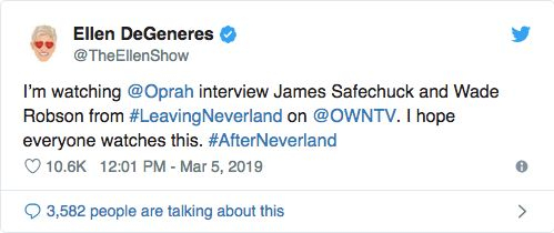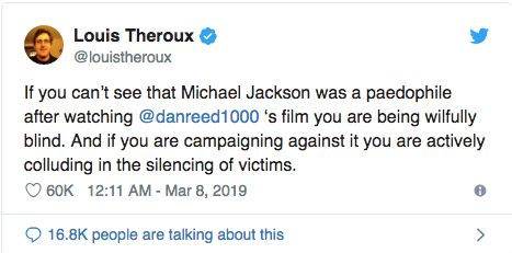 推特网民:“如果你在看完里德的影片之后不认为MJ是个恋童癖者,那你是瞎了。如果你对此片表示抗议,那你就是压制受害者发声的同谋。”