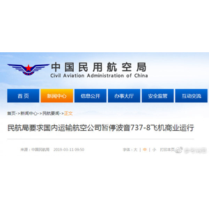 今天(11日)上午9点,中国民用航空局发出通知,要求国内运输航空公司于今天18时前暂停波音737-8飞机的商业运行。