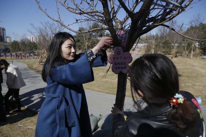 今天是中国植树节,玉渊潭公园启动了今春的“春植护花”工作。记者在公园“樱落花谷”景区看到,近50名游客志愿者正与工作人员一起栽植樱花,以及连翘、丁香、紫薇等开花灌木。记者从现场了解到,公园特别邀请了游客志愿者参与今年的春植工作,并为园内的樱花树悬挂“文明赏花”提示牌。前来参与志愿植树的施女士告诉记者,自己第一次在公园种树“感觉很新奇,也是为绿化做了一点贡献。等春天树上花开了,可以经常过来看看”。