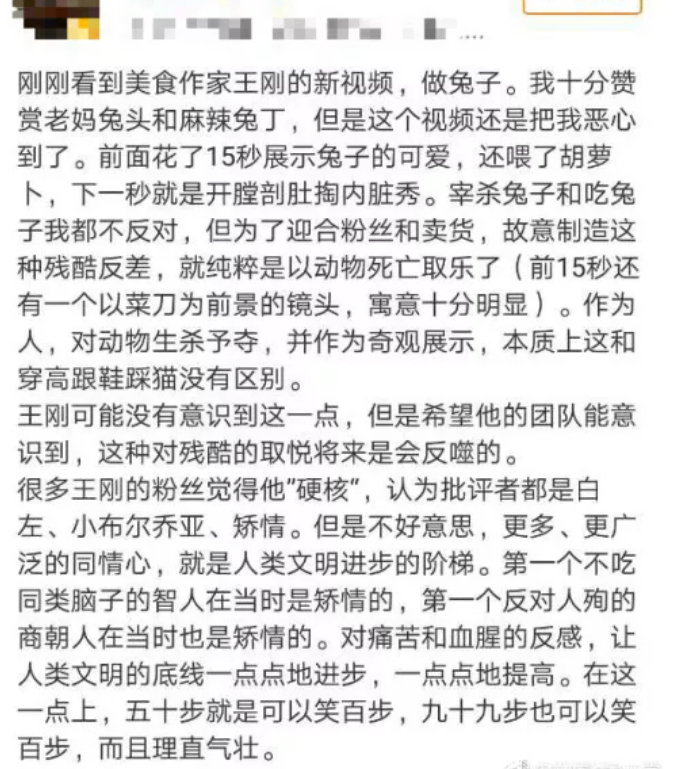 这个世界上一定有人在杀兔子,不然大家怎么吃呢?最近,一个在网上相当有影响力的“美食大厨王刚”,因为一个“杀兔子”的视频,引起了很大争议。