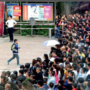 2016年4月, “全国小学数学奥林匹克比赛”决赛在四川成都的一个考点,家长等待学生出来。图/视觉中国