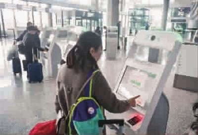从进入值机大厅到办理好行李托运最快3分钟 自助打印登机牌行李牌 本版摄影 记者 陈梦泽