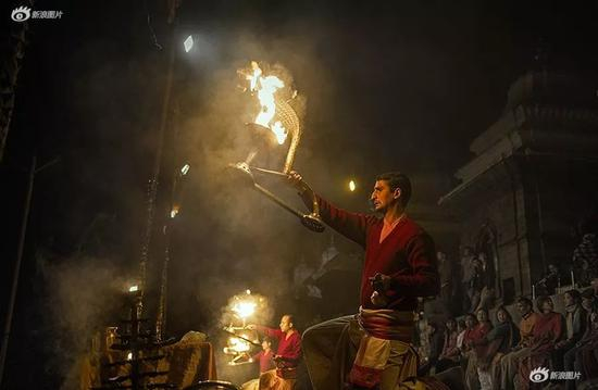 傍晚当地人们聚集在恒河边,载歌载舞为未来祈福。