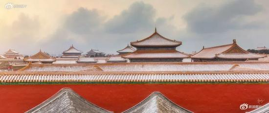 2019年情人节这天,紫禁城喜迎春雪。站在城墙之上眺望,远处宫殿巍峨,白雪皑皑。