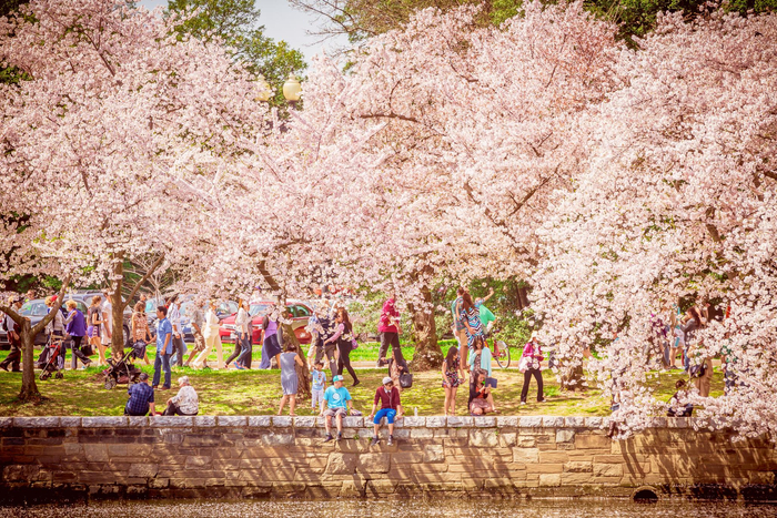 三月里,华盛顿特区樱花盛开。图片来源/华盛顿特区旅游局供图