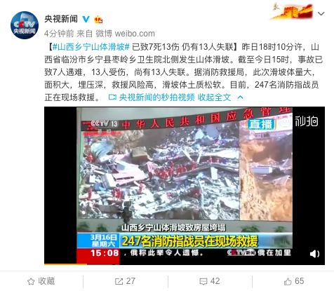山西滑坡致7死13失联 女孩被救后一动作令人感动