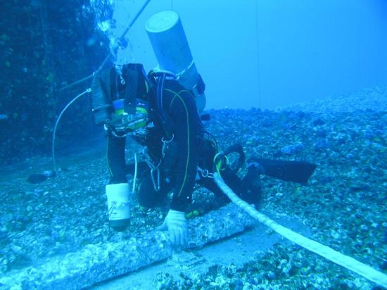 当然也有队员们不愿提起的往事。很早之前,潜水队曾经出现过潜水员的脐带被水下锋利物体切断过的事故。这个潜水员被水流冲走,而且携带的“回家气瓶”不够正常减压时间使用,再也没能“回家”。