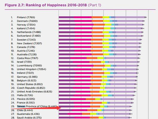 报告在列举2016-2018全球幸福报告时,台湾的标注明明是“中国一省”……↓